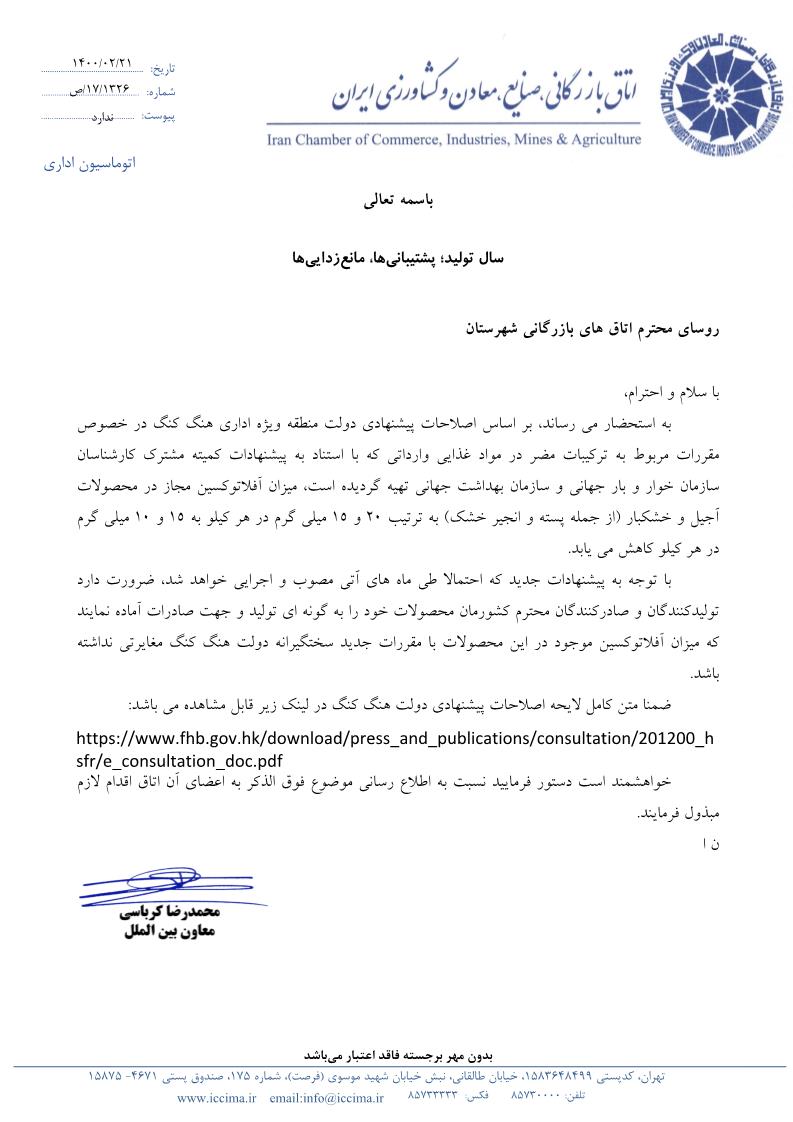 تغییر قوانین هنگ کنگ در خصوص میزان افلاتوکسین موجود در پسته و انجیر