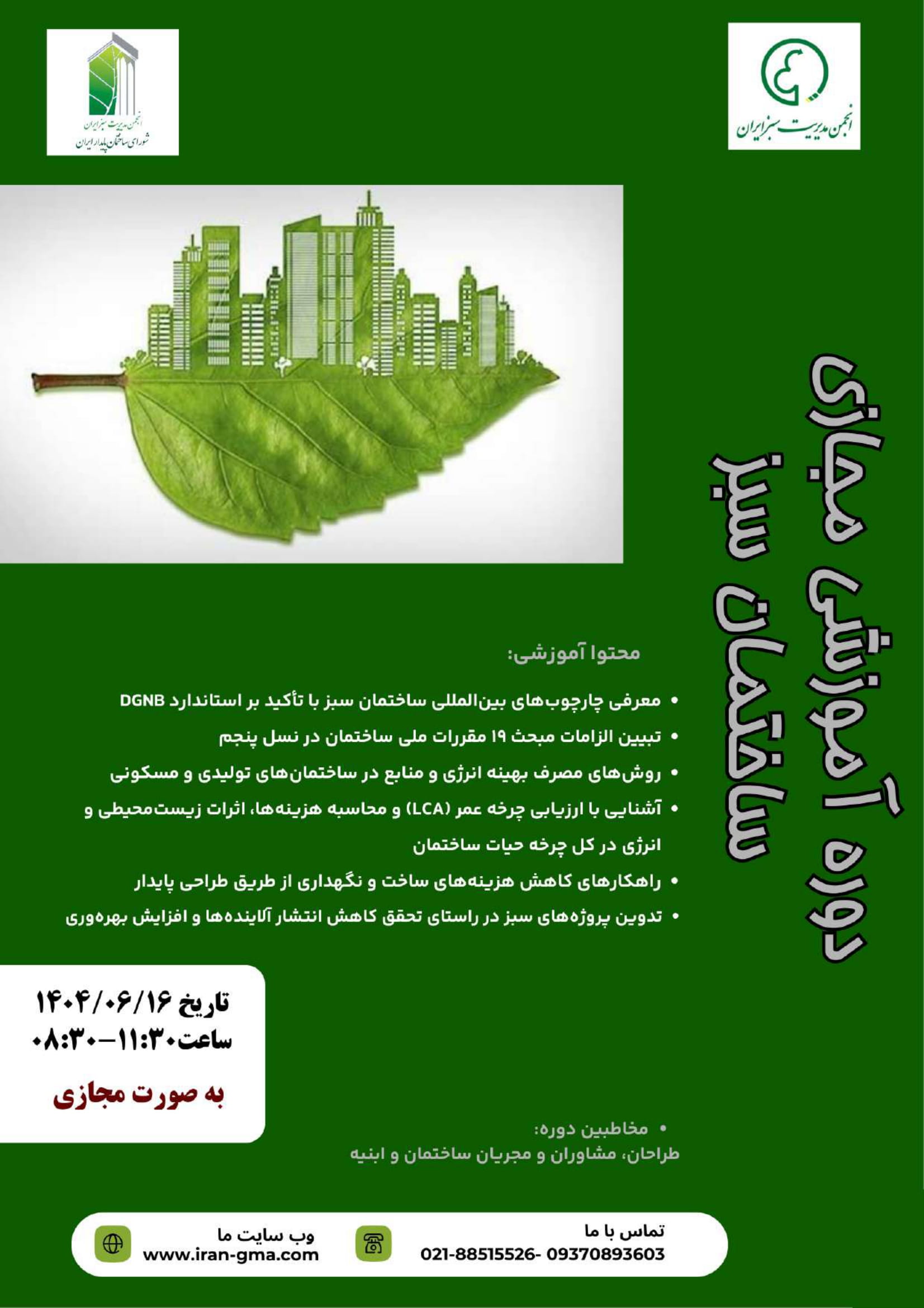 ۲- دوره مجازی ساختمان سبز (۱۶ شهریورماه ۱۴۰۴)
