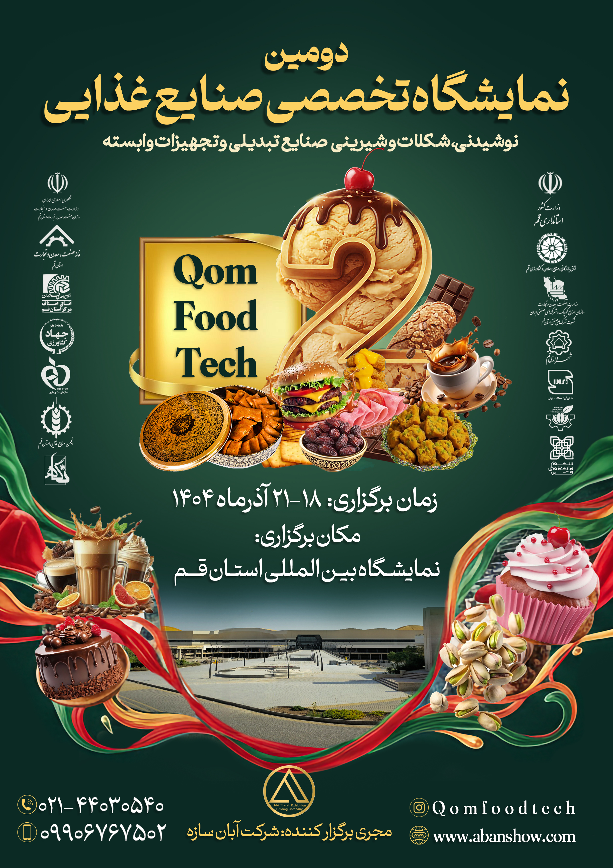 دومین نمایشگاه تخصصی صنایع غذایی استان قم در روزهای 18الی 21 آذر در نمایشگاه بین المللی قم برگزار می گردد.
