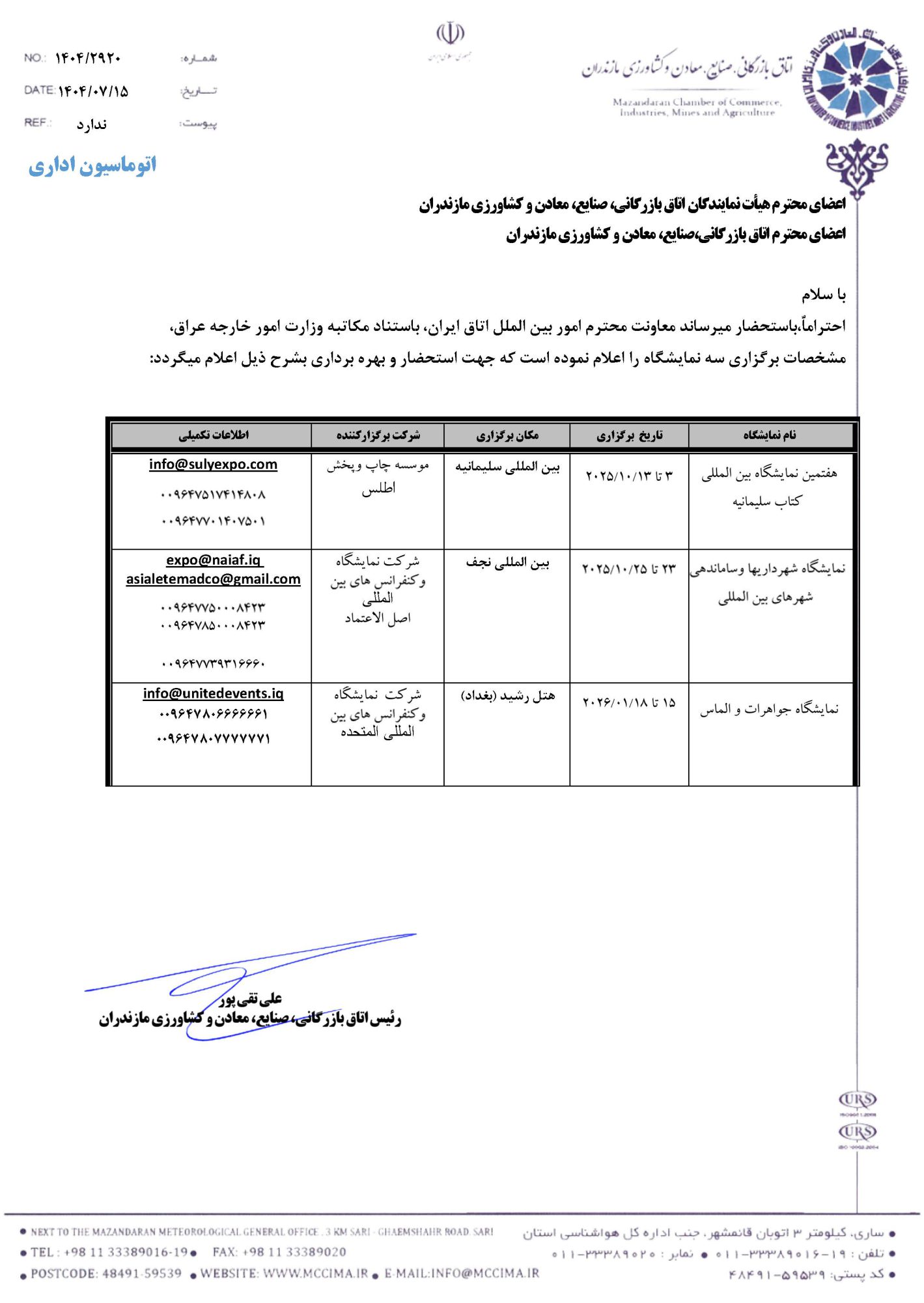اطلاع رسانی برگزاری نمایشگاه جواهرات و الماس در بغداد - 2025 و 2026
