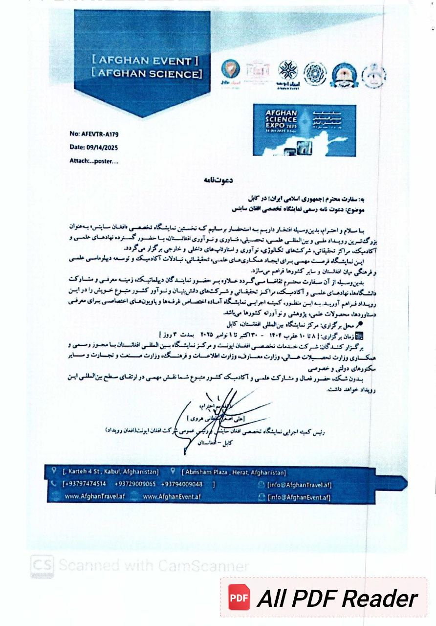 برگزاری نمایشگاه افغان ساینس - 8 لغایت 10 آبان 1404