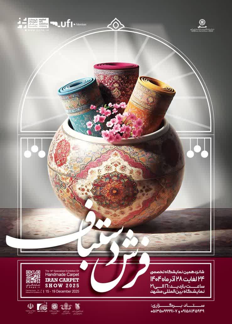 تاریخ برگزاری شانزدهمین نمایشگاه فرش دستباف به روزهای 24 الی 28 آذرماه 1404 در محل نمایشگاه بین المللی مشهد موکول شده است.
